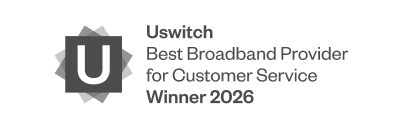 Providing the best customer service is at the heart of what we do. At the 2026 Uswitch Awards we won the Best Broadband Provider for Customer Service for the third year running. Voted for by the public, so it’s extra special.